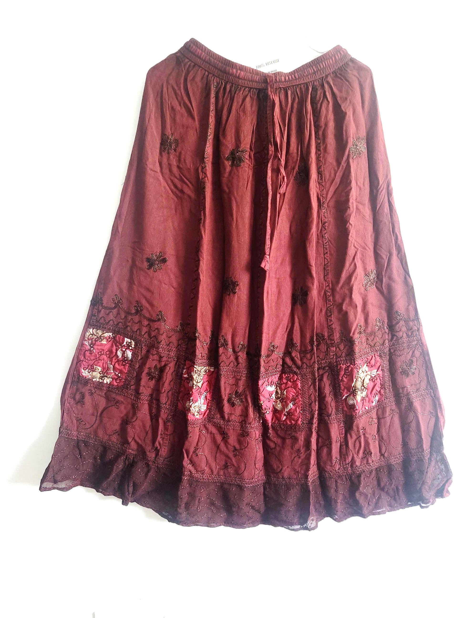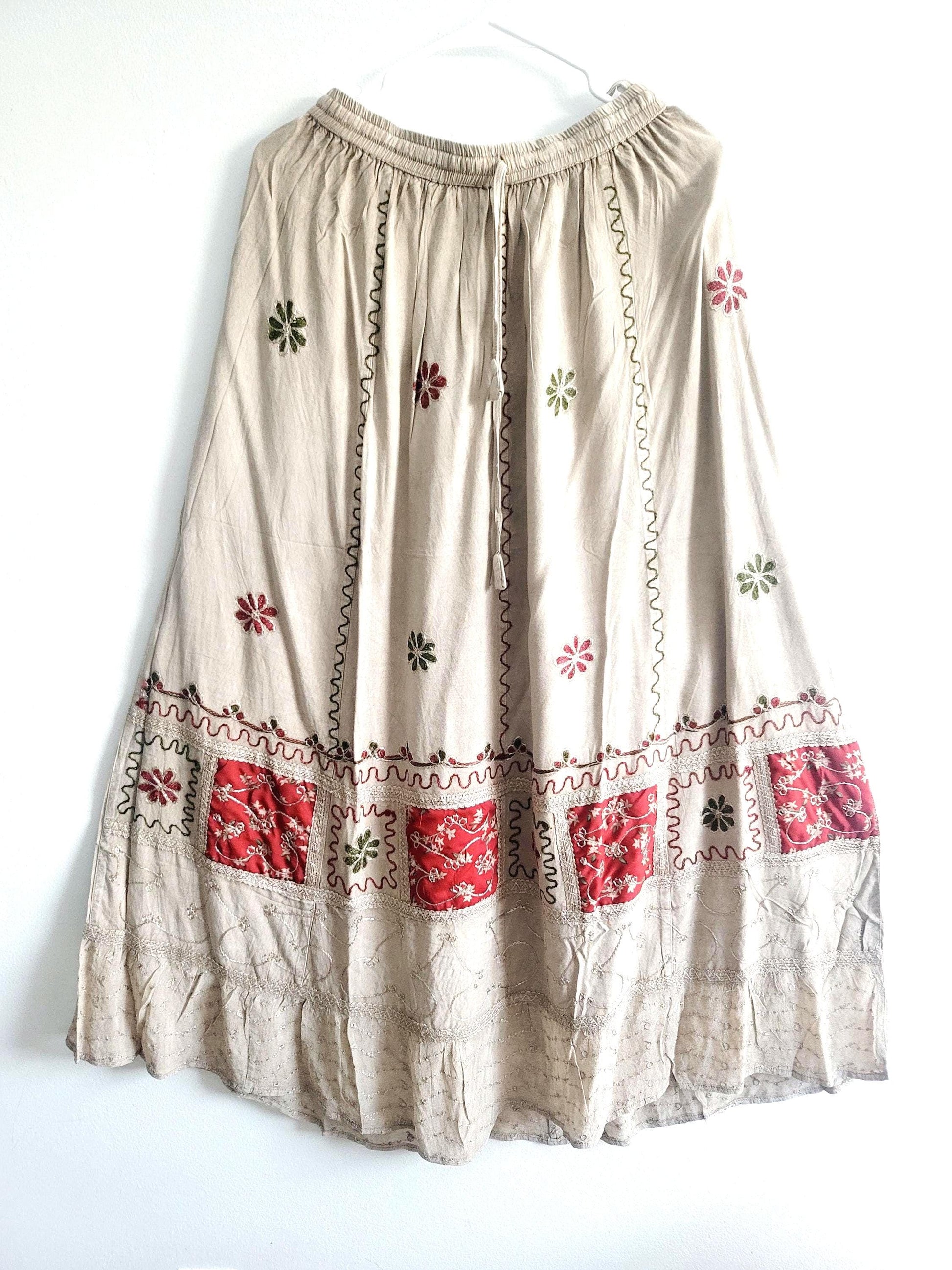 Boho Hippie Embroidery Viscose Skirt, Women, Hancrafted, Embroidered Bohemian