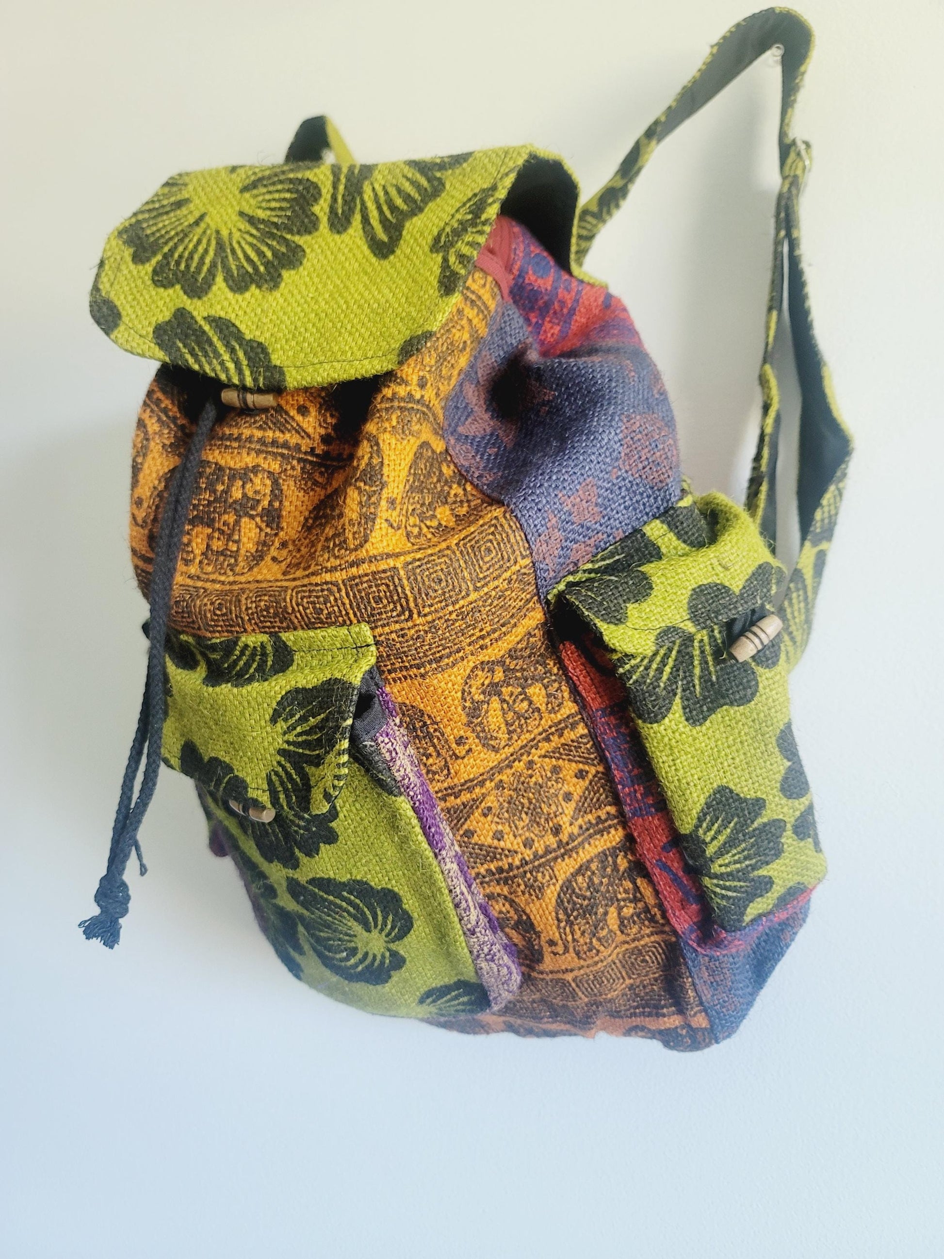 Boho Hippie Tibetan Jute Backpacks, Handmade Bag, Artisan Backpacks, Bohemian