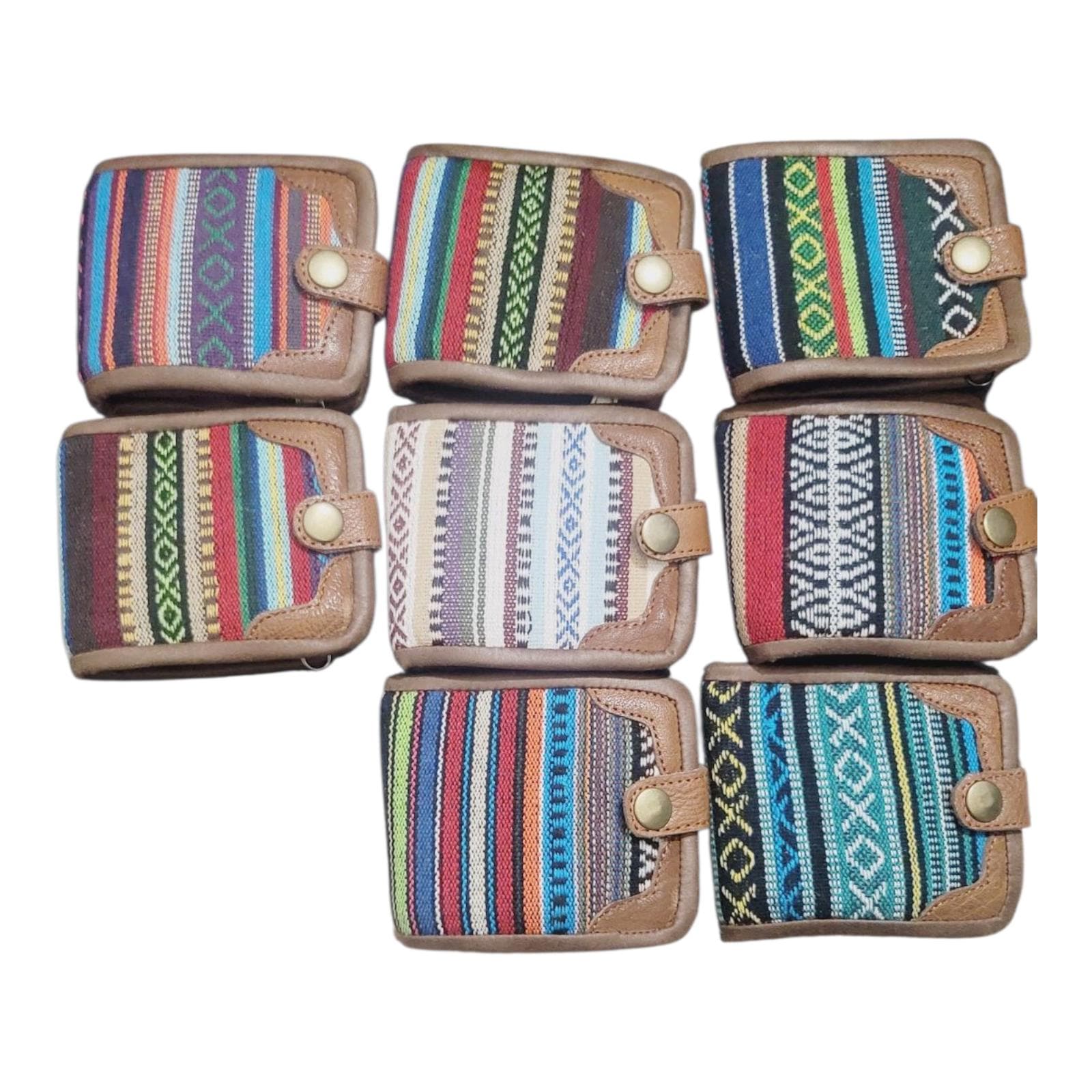 Handcraft Boho Gheri Cotton and Leather Wallets, Bohemian Style, Handmade In Nepal, Purse