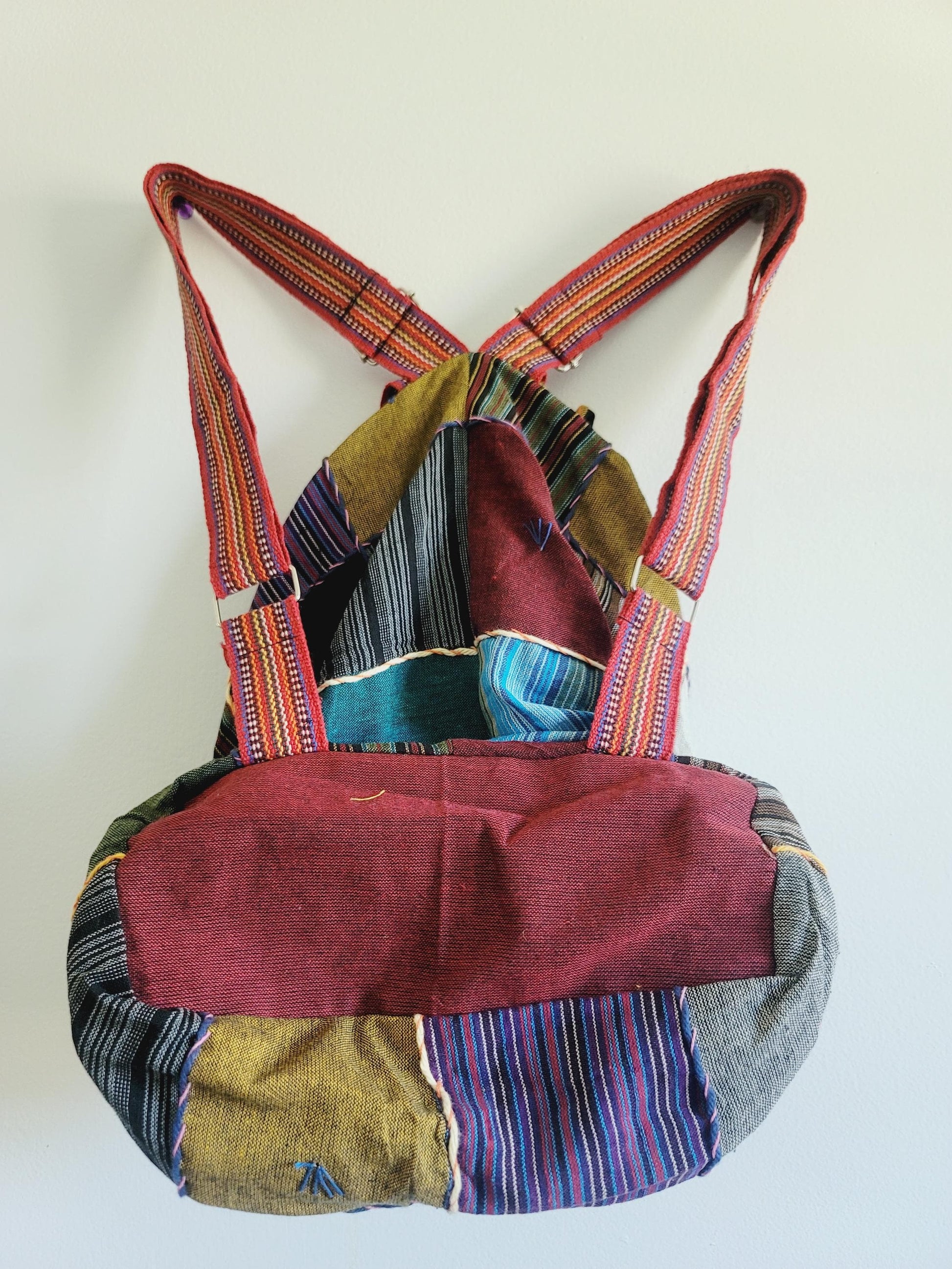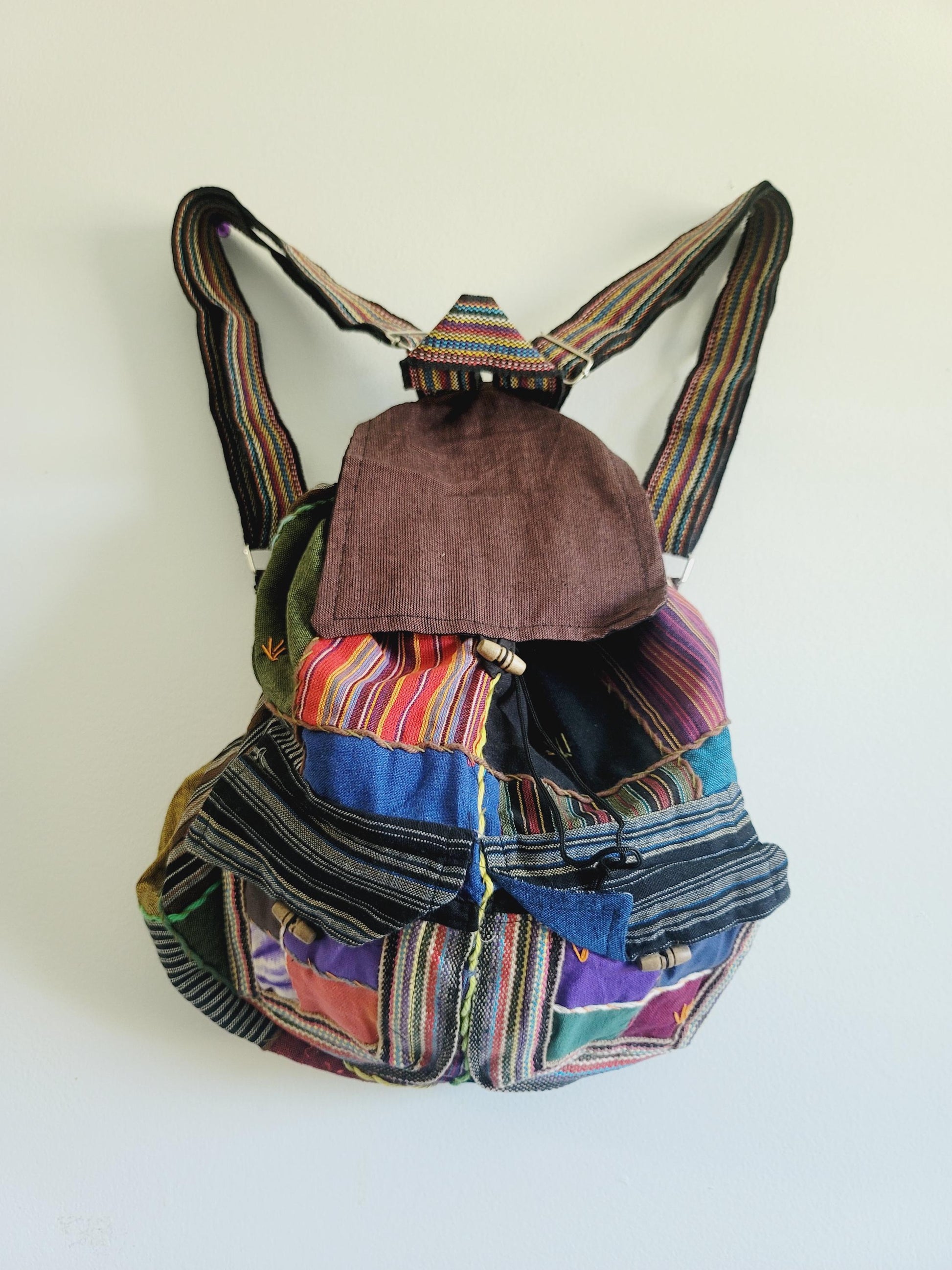 Handcrafted Cotton Boho Backpack: Nepal Razor Cut Patchwork Bag
